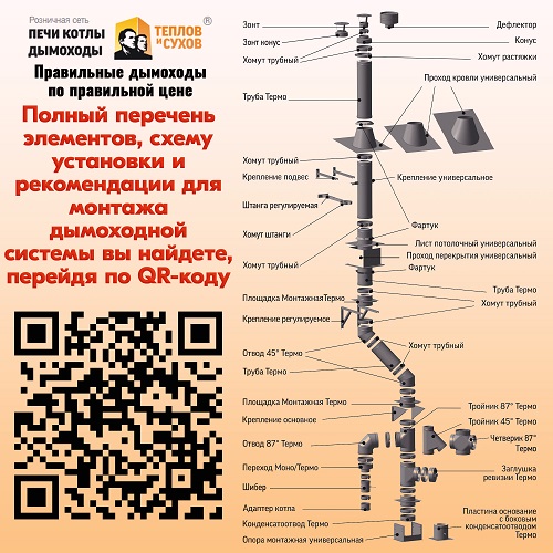 В нашем магазине печей, котлов и дымоходов, кстати, уже имеются все комплектующие для монтажа системы отвода дыма: