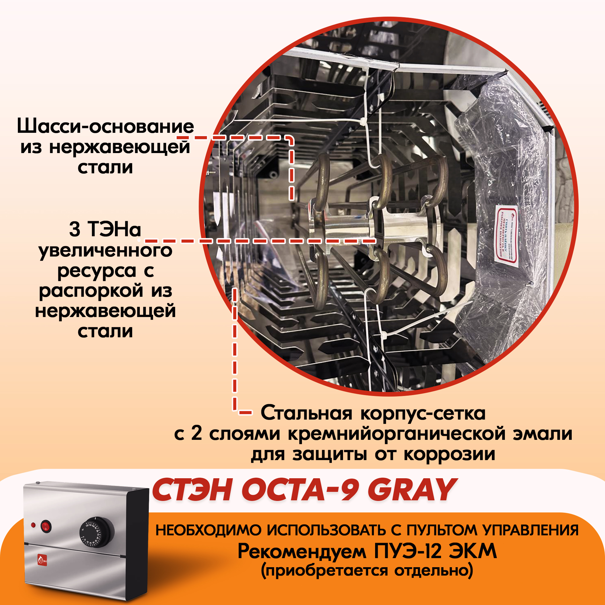 Электрическая каменка СТЭН ЭКМ 9 Octa gray в Ижевске | Доставка по России