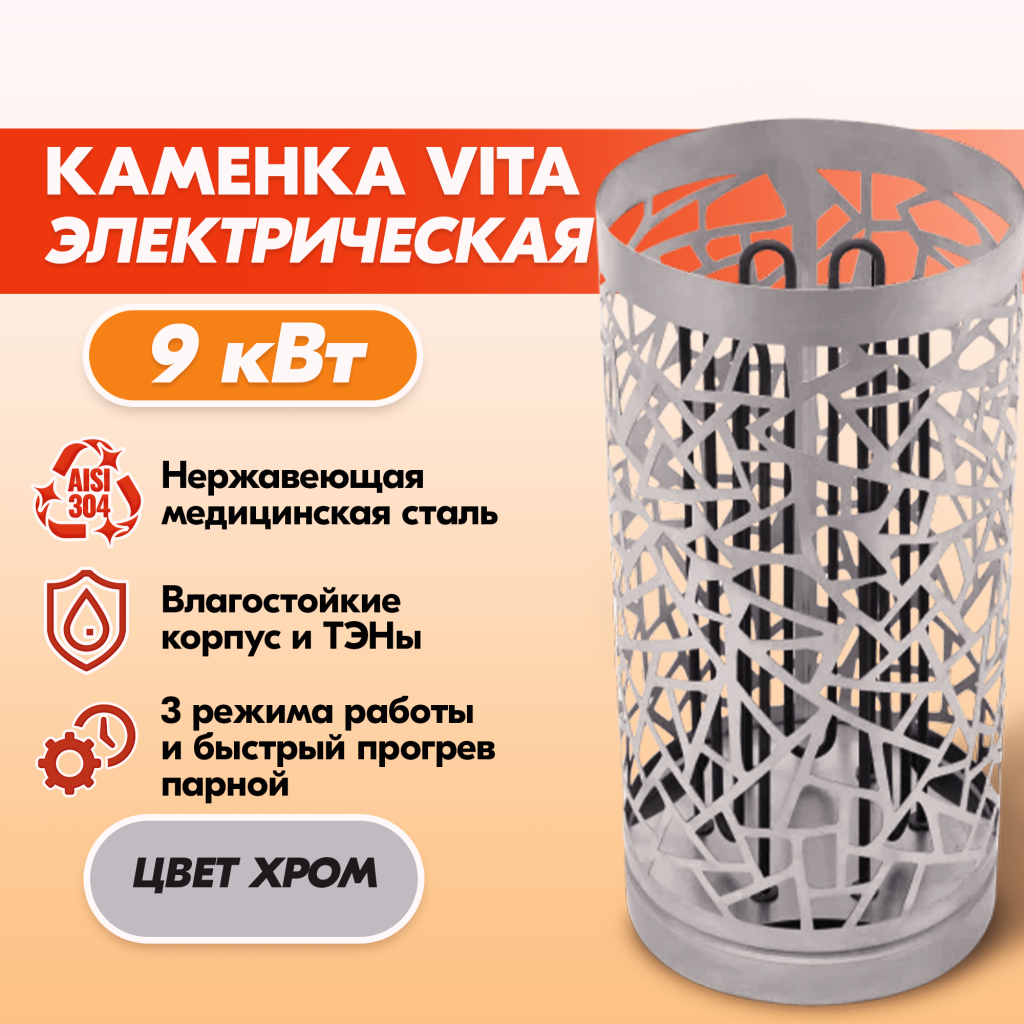 Электрокаменка VITA 9 кВт нерж. в Ижевске | Доставка по России