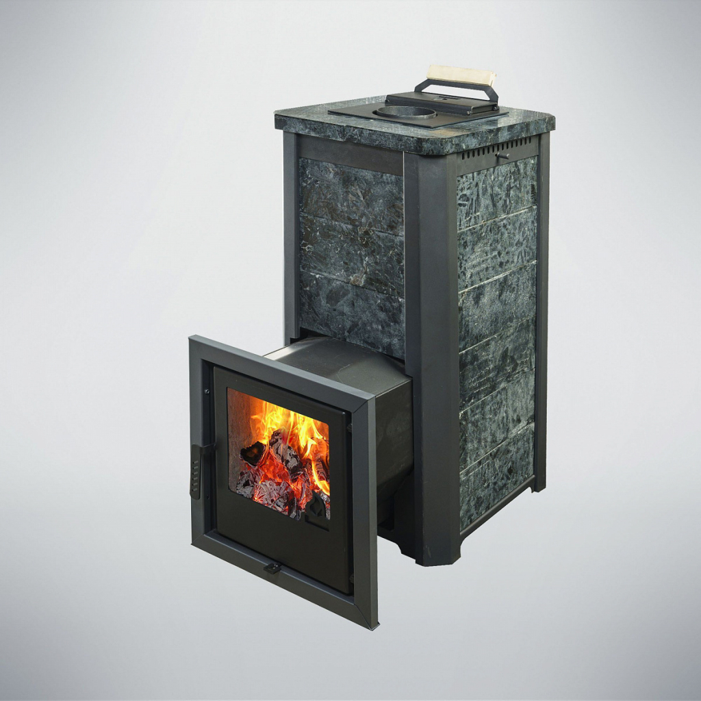 Варвара ТЕРМА Сказка – Банная печь с закрытой каменкой, облицованная в кожух из камня. В конструкции данной печи имеется закрытая каменка камень в которой нагревается до 600-О С, что позволяет получить мягкий - мелкодисперсный пар.