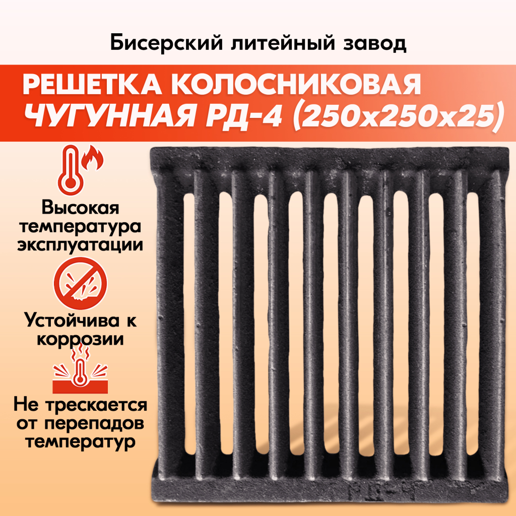 Решетка колосниковая РД-4 (250х250) чугунная для печи и котла,правильные колосники для печки и котлов