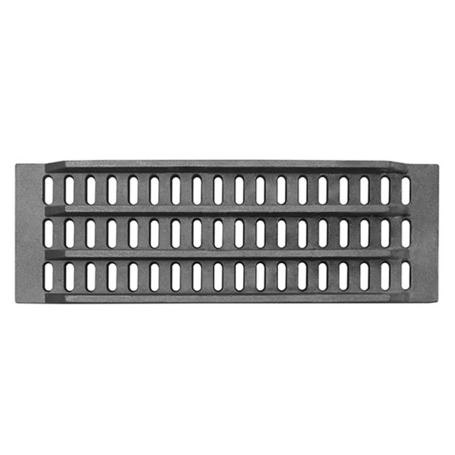 Решетка колосниковая промышленная РУ-П-5 предназначена для топки углем. Решетки колосниковые выполняются цельными из чугуна. В решетках имеются отверстия, через которые подается воздух к топливу и просыпается зола в поддувало. Решетка используется для размещения и просушивания топлива. Важной функцией решетки колосниковой РУ-П-5 является то, что она производит распределение потока воздуха из отделения для золы и обеспечивает качественную тягу. В комплексе с дверцей это позволяет осуществлять контроль и регулировку пламени. Что касается площади просветов, то хороший чугунный колосник РУ-П-5 должен иметь величину данного показателя в пределах 40 %. А вот снижение площади просвета может привести к недостаточно полному сгоранию топлива и повышению образования газов. Постоянное воздействие высоких температур, одновременно охлаждение снизу и механические нагрузки является серьезным испытанием на прочность. Поэтому чугун должен быть высокого качества.