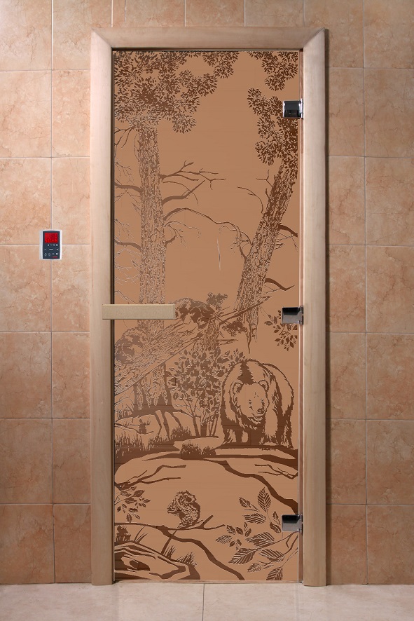 Дверь для сауны "Мишки в лесу" (матовая) 190х70 в Ижевске | Доставка по России