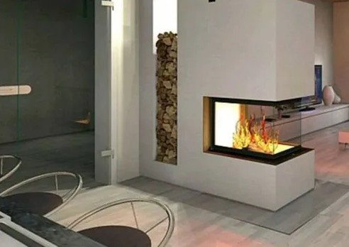 Дверь каминной топки декорирована плоским стеклом. Такие стекла делаются всего в 2 странах: Германии и Японии. Оно выдерживает температуру до 750 градусов. Но если ударить кочергой, то может треснуть. Через стекло любуются огнем и следят за прогоранием дров и подкладкой новых.