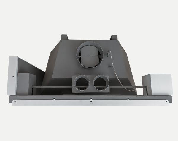 •Встроенная шиберная заслонка позволяет увеличивать/уменьшать сечение дымового канала и регулирует мощность топки.