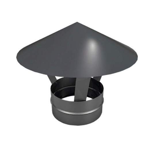 Защитный зонт предотвращает попадание дождевой воды и снега внутрь дымохода.