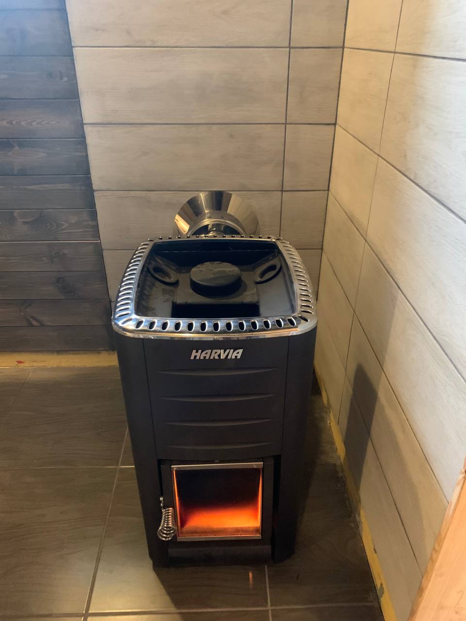 Монтаж печи  Harvia m2 установкой дымохода
